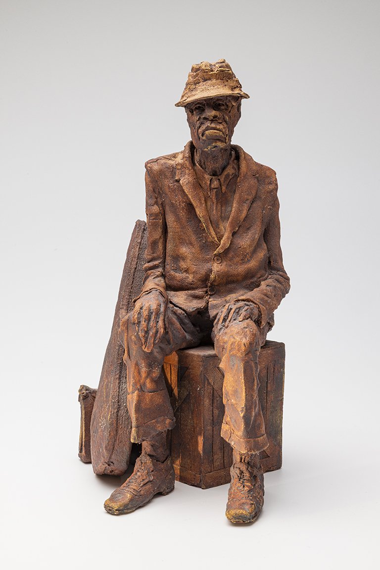 His gig finished, John L. waits on the juke joint’s loading dock for his ride. His young man’s suit hangs loosely on his shoulders – all his possessions stashed in a satchel beside his guitar. He has traveled through love and loss, ambition and defeat, honor and humiliation. Dignity intact, his eyes still demand respect in the time remaining.
